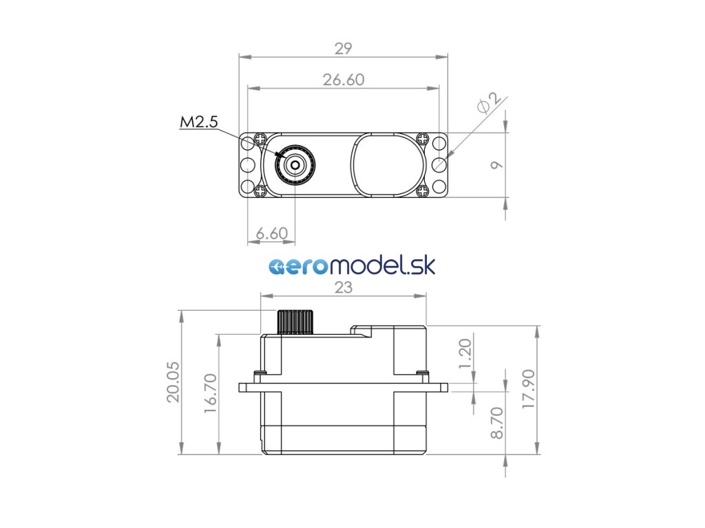 Velmi silné a rychlé programovatelné tenké digitální mikroservo s titanovými převody uloženými na jednom kuličkovém, jednom samomazném a dvou jehlových ložiscích. Díky přesným předepjatým převodům s minimálními vůlemi a ploché krabičce s výškou 9 mm je zvláště vhodné pro ovládání křidélek a klapek v RC házedlech F3K, malých větroních a motorových modelech s tenkými profily křídla, jako jsou F5D modely pro závody okolo pylonů. Pro dokonalé chlazení i při vysokém zatížení je servo uloženo v hliníkové krabičce bez patek.
