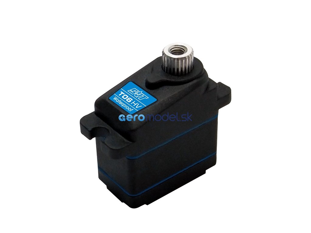 Generace WATERPROOF (vodotěsné) DC (stejnosměrný motor) serva T06 navrženo pro rekreační modeláře rychlostí až 0,10s a 2,8kg/cm tahu/točivého momentu. Servo využívá kompozitní pouzdro pro dosažení nižší váhy, zatímco stejnosměrný motor a kovové převody zajišťují vysoký výkon a trvanlivost. Servo je vybaveno JR konektorem o délce 350mm v černé barvě.