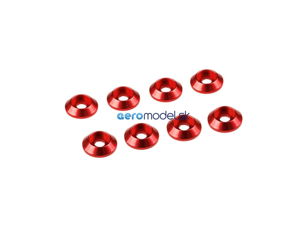 3 mm hliníkové kuželové podložky červené, 8 ks.