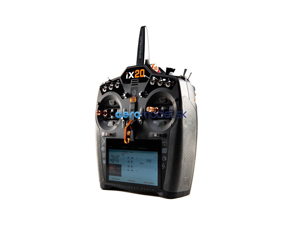 Vysielač Spektrum™ iX20 je doteraz najvýkonnejší 20-kanálový letecký vysielač, doslova nabitý funkciami so širokou škálou inovácií a vylepšení. Bol navrhnutý tak, aby spĺňal súčasné a budúce potreby náročných pilotov, ktorí chcú prémiové funkcie, jednoduchú programovateľnosť a možnosť ovládať najnáročnejšie modely. Spektrum™ iX20 je inteligentný vysielač s dotykovým displejom a rozhraním Android 7. Obrovský 5-palcový farebný dotykový displej s rozlíšením 720p uľahčuje prácu s najnovšími technológiami. Úplne nový firmvér Spektrum AirWare™ bol optimalizovaný a vylepšený, aby ponúkal rýchlosť, prehľad a výkon.