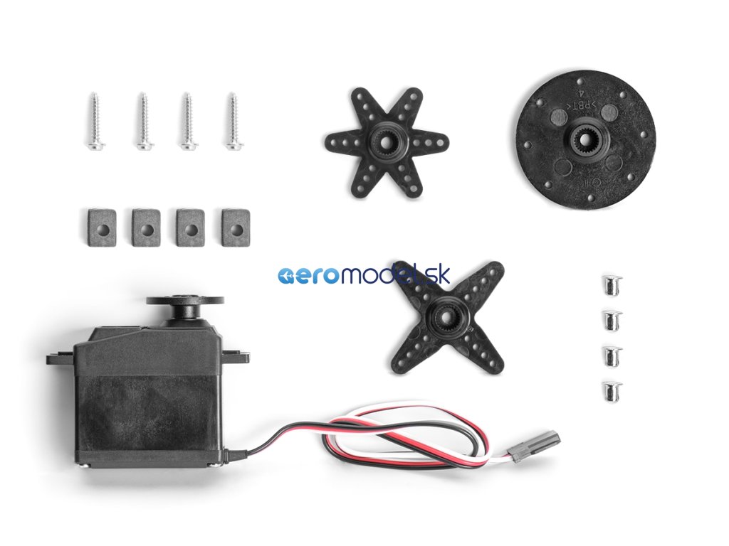 “Nízkorozpočtové“ programovatelné digitální standardní S.BUS2/S.BUS servo s plastovými převody s vyšším tahem a zvýšeným napájecím napětím pro všeobecné použití. Ideální pro modely letadel všeho druhu (až do velikosti pro cca 15-20 ccm spalovací motor), auta i lodě.