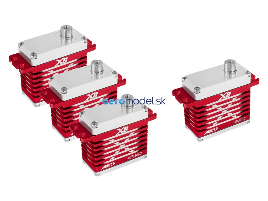 Combo set standardních serv pro vrtulníky velikosti 700-800 obsahující 3x HBL850 standardní střídavá serva pro cykliku a 1x standardní střídavé servo HBL880 (úzkopásmové 760µs) pro ocasní rotor. Kompatibilní s většinou 760µs gyroskopů a flybarless jednotek.
