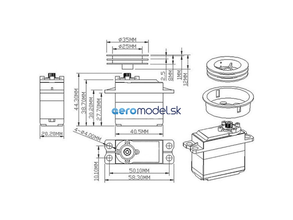 | Rýchlosť: | 0,6s / 360° & 6 V; 0,72s / 360° & 4,8 V |