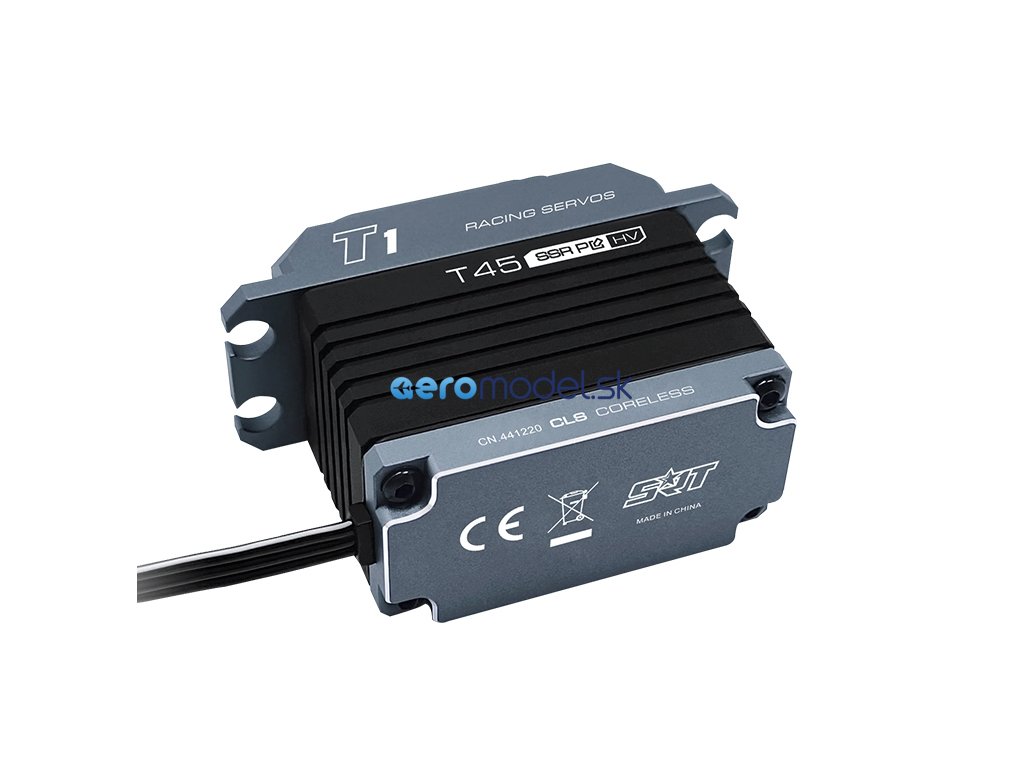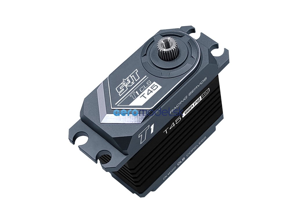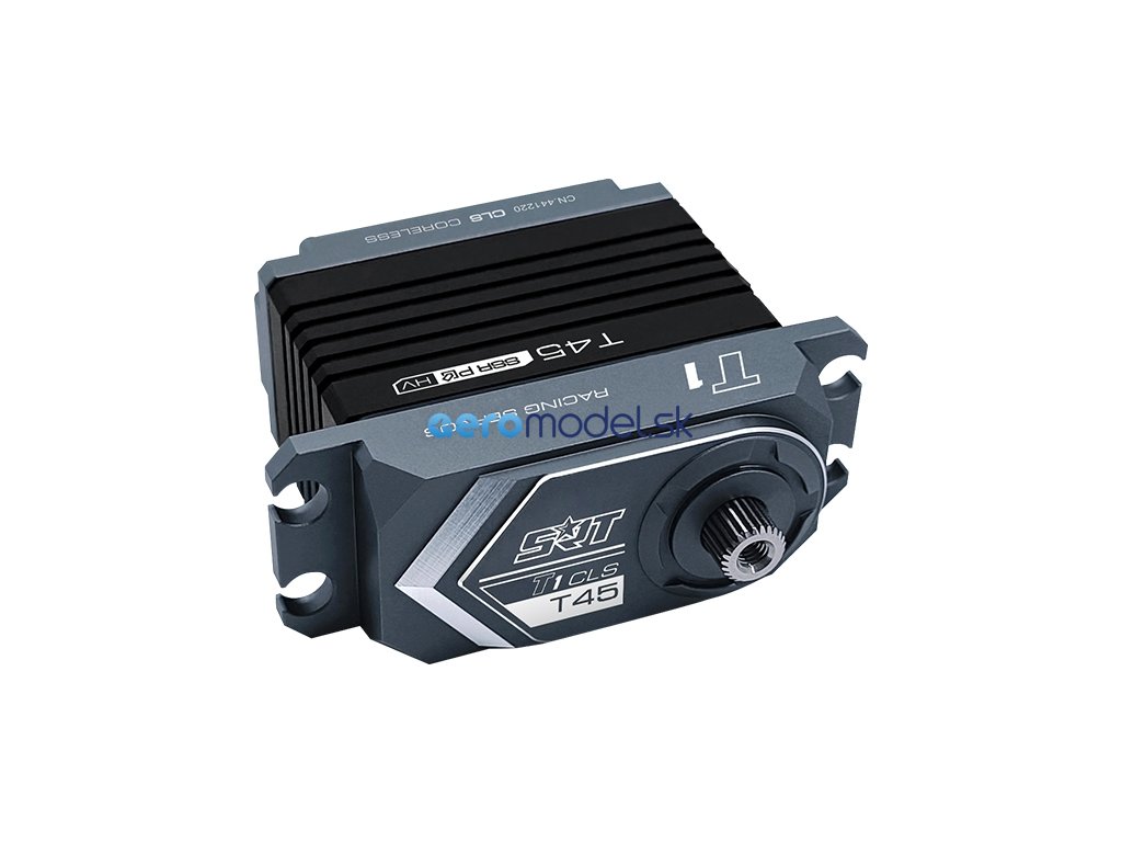 NOVÁ generace programovatelných CORELESS serva T 45HV speciálně navrženo pro 1/8 On/Off-Road modely s reakční rychlostí až 0,13s a 45kg/cm tahu/točivého momentu. Servo využívá celohliníkové pouzdro pro dosažení optimálních teplot ale i tuhosti, zatímco střídavý motor a ocelovými převody zajišťují vysoký výkon a trvanlivost. Servo je vybaveno JR konektorem o délce 300mm v černé barvě.