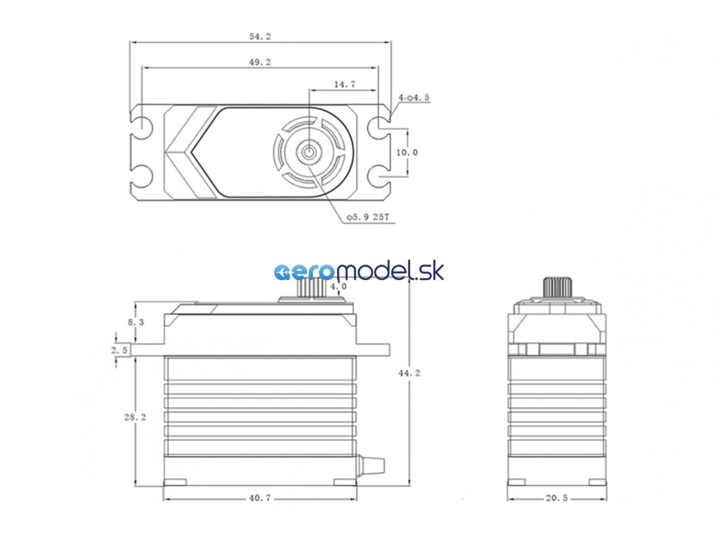 - Tah/Točivý moment (7.4V): 40,0kg.cm