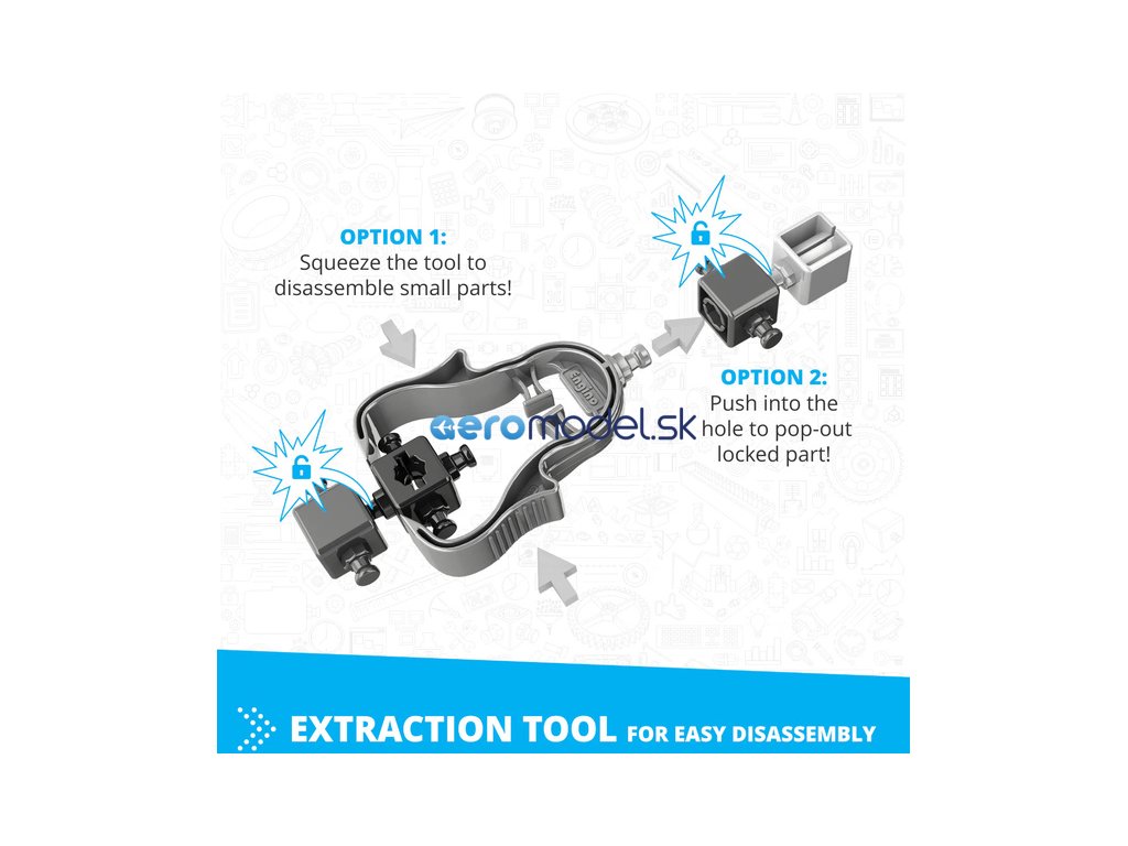 - Inovativní design: Patentovaná zaklapávací konektivita a vícesměrné otočné čepy umožňují stavět z různých úhlů až ze 6-ti stran současně.
