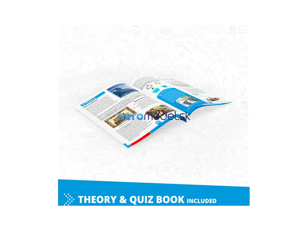 Voda a vzduch jsou dva nejdůležitější prvky pro život a spadají do stejného názvu tekutina, což je společný název pro kapaliny a plyny. Pohyb vzduchu určuje teplotu v našich místnostech. Potrubí dodávají vodu do našich domovů. Průmyslové a stavební stroje využívají hydrauliku pro snadné zvedání těžkých předmětů. Letadla a lodě mění směr pomocí aerodynamiky a hydrodynamiky. Přemýšleli jste někdy nad tím, proč předměty klesají ve vodě, zatímco jiné plavou? Jak proudí krev v našem těle? Jak fungují vodní nádrže? S touto sadou si můžeš postavit 6 různých modelů, včetně člunu a ponorky, jakož i různých experimentálních souprav, aby ses naučil vše o dynamice tekutin! Součástí jsou tištěné návody na stavbu pro 4 modely a další 2 modely jsou dostupné online a prostřednictvím bezplatné aplikace kidCAD pro chytrá zařízení.