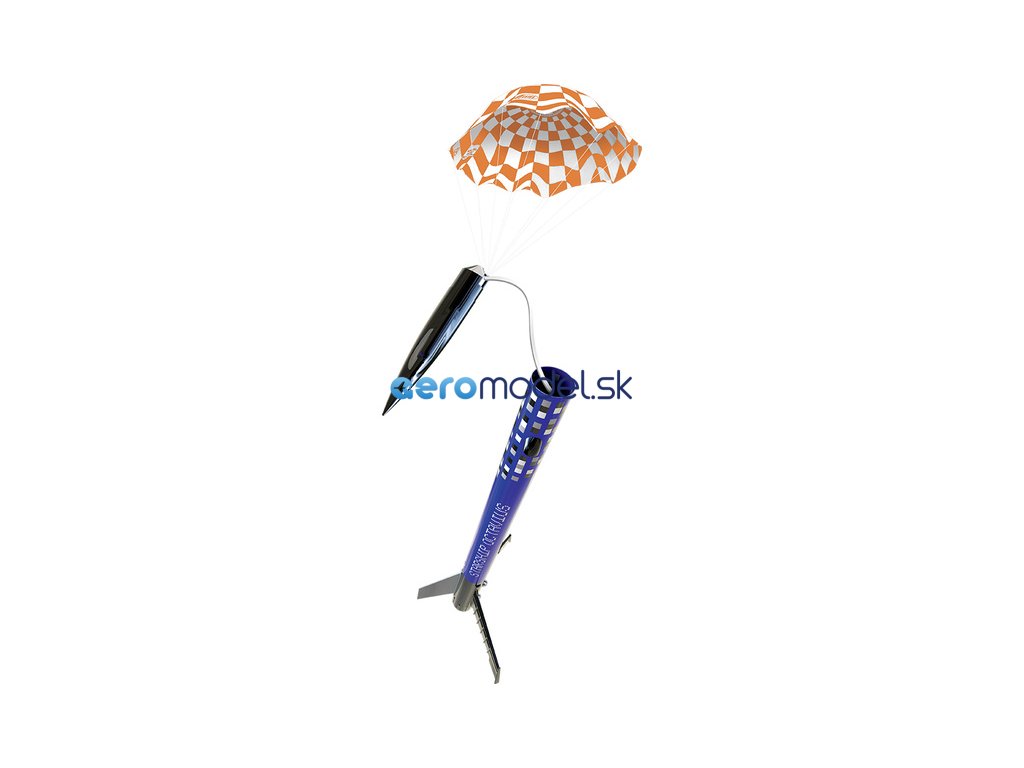 Balení obsahuje: tubus se špicí, padák, držák motoru, stabilizátory, samolepky, návod CZ, manuál EN.