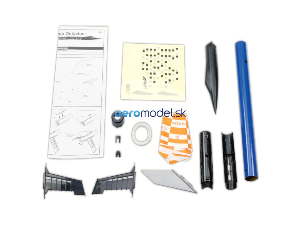 Model rakety Estes Starship Octavius Kit je na raketové motory řady A - C. Raketa se štíhlým tělem, propracovanými stabilizátory a vypouklou špicí imitující kokpit. Vhodná pro začátečníky, snadné sestavení. Létá do výšky až 335 m m a k zemi se snese díky padáku o průměru 305 mm.