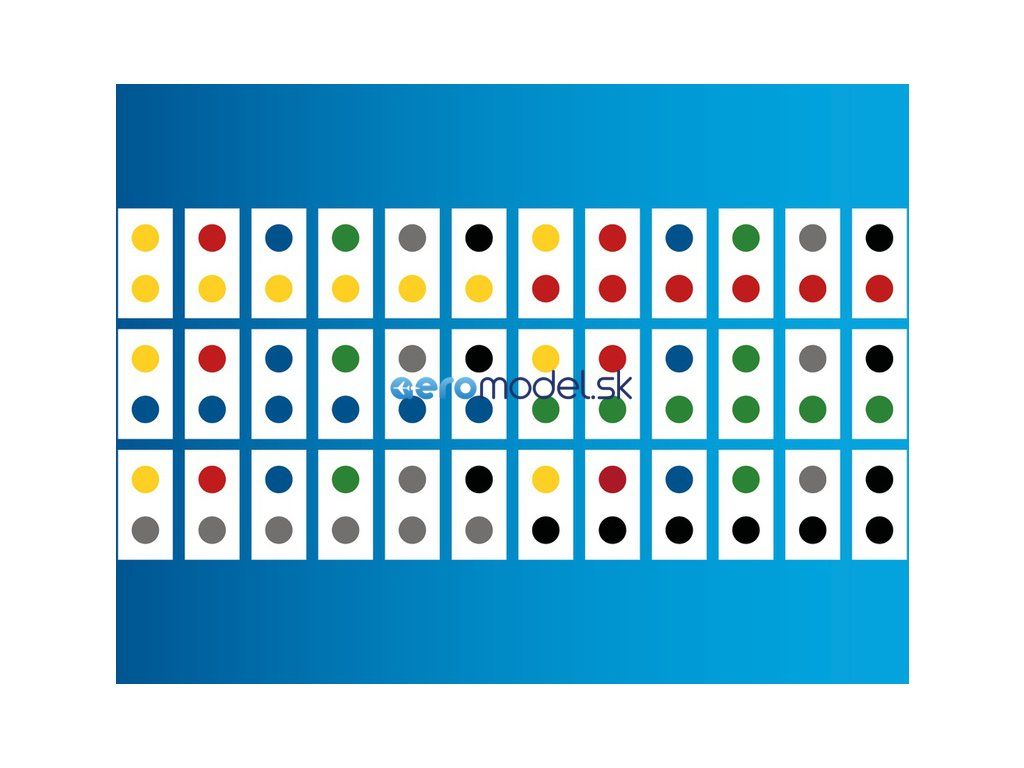 Hubelino - Dúhové domino obsahuje: 70 kociek, 1 základnú dosku.