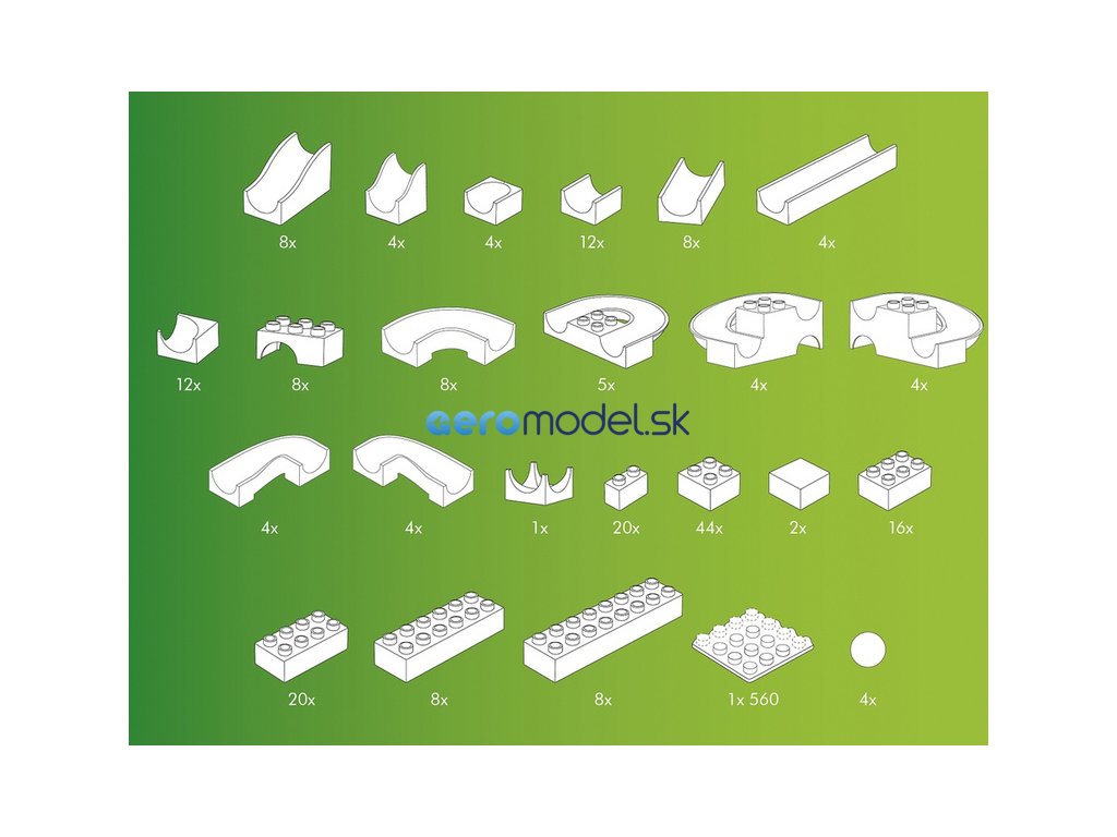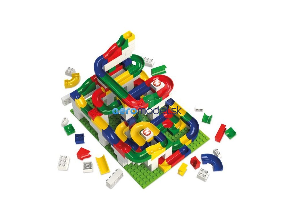 Vlastnosti: Sada obsahuje všetky potrebné prvky, ktoré sa dajú použiť na stavbu guľôčkovej dráhy: