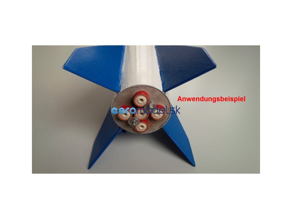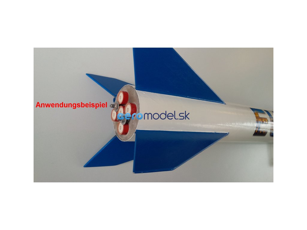Balení obsahuje: 2 tubusy ( na sestavení správné velikosti ), plastovou špici, stabilizátory, držák motoru, padák, obtisky, návod CZ, manuál EN, DE, FR, IT, SP.