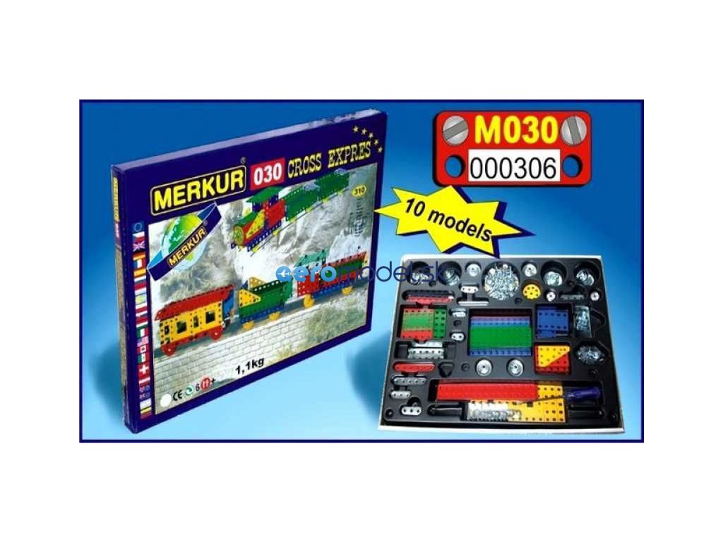 MERKUR 030 CROSS Express je stavebnica, z ktorej si môžete postaviť 10 rôznych modelov, napr. lokomotívu, tender a osobný vagón. Malí inžinieri si môžu postaviť model aj podľa vlastných predstáv, fantázii sa medze nekladú. Stavebnica obsahuje 310 dielikov vrátane návodu a náradia. Vhodná aj pre deti, ktoré s Merkúrom začínajú. So zostavenými modelmi sa dá hrať, sú veľmi odolné.