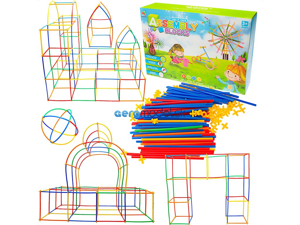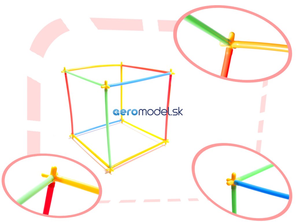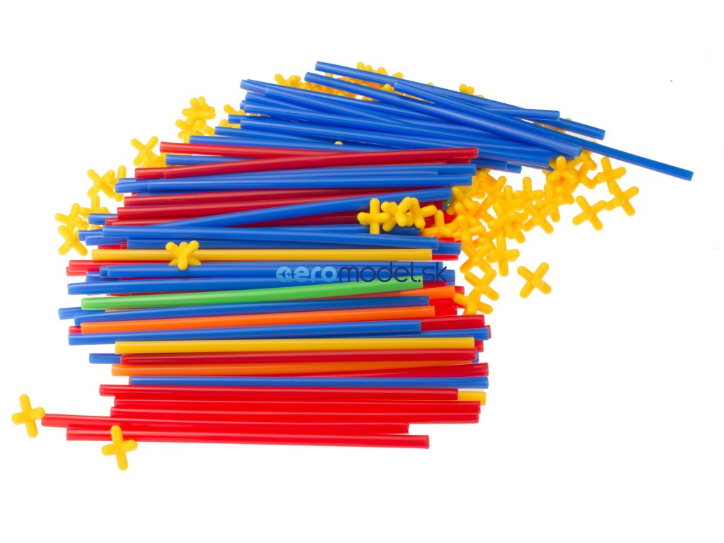 Balenie obsahuje plastové slamky a plastové krížiky. Spojením slamiek s krížikmi môžete vytvárať rôzne štruktúry.