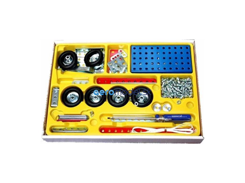 Stavebnica sa skladá z 217 dielikov. Súčasťou balenia je skrutkovač na skrutkovanie spojov.