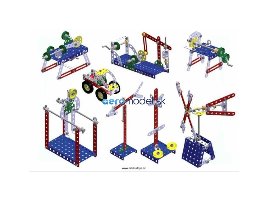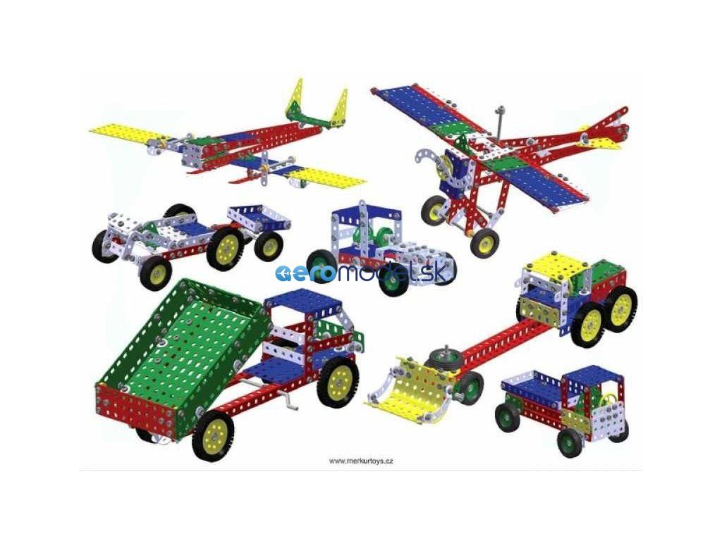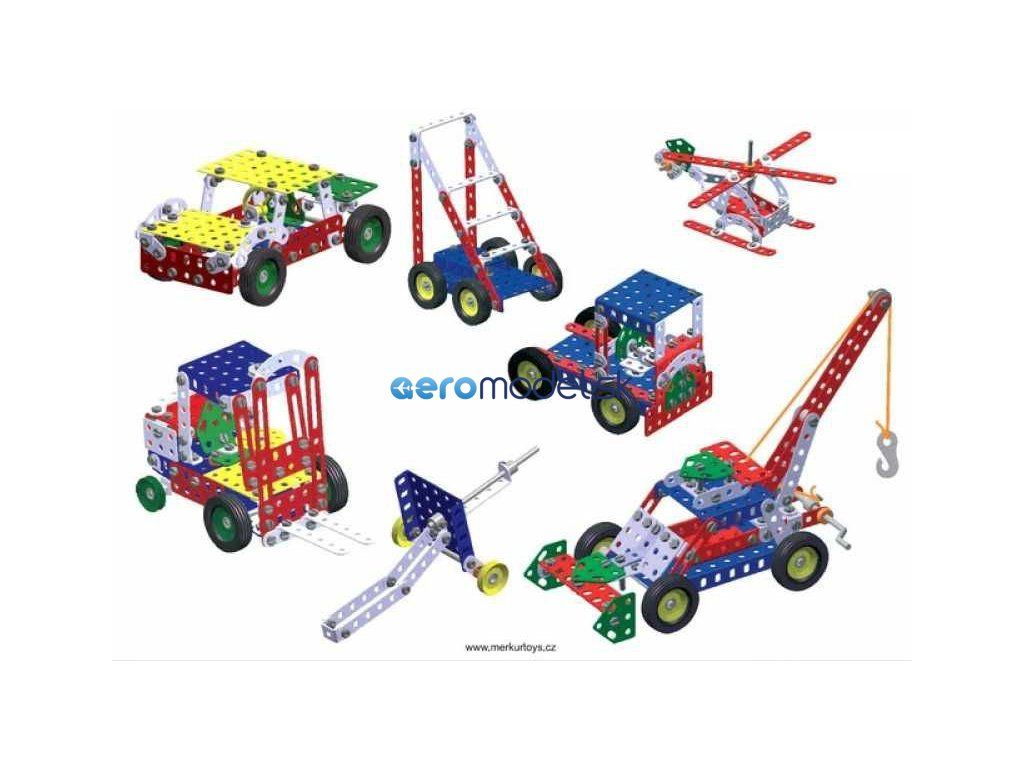 Dvojvrstvová klasická veľká stavebnica Merkur 4 obsahuje nielen základnú sadu dielov, ale aj diely potrebné na stavbu nákladných vozidiel, formúl a lietadiel. Súčasťou stavebnice je samozrejme aj veľká návodová kniha s návodmi na stavbu 40 rôznych modelov, ako sú nákladné auto, mesačník, bugina, formula, žeriav atď. Zostavené modely sú veľmi odolné a možno sa s nimi hrať.