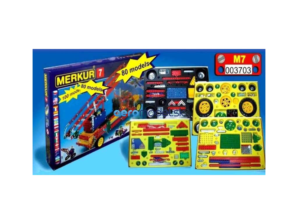 Merkur 7 je veľká štvorvrstvová klasická súprava. Obsahuje základnú sadu dielov a ďalšie diely na stavbu veľkého hasičského auta, veľkých žeriavov a ďalších modelov. Súčasťou stavebnice je veľká návodová kniha.