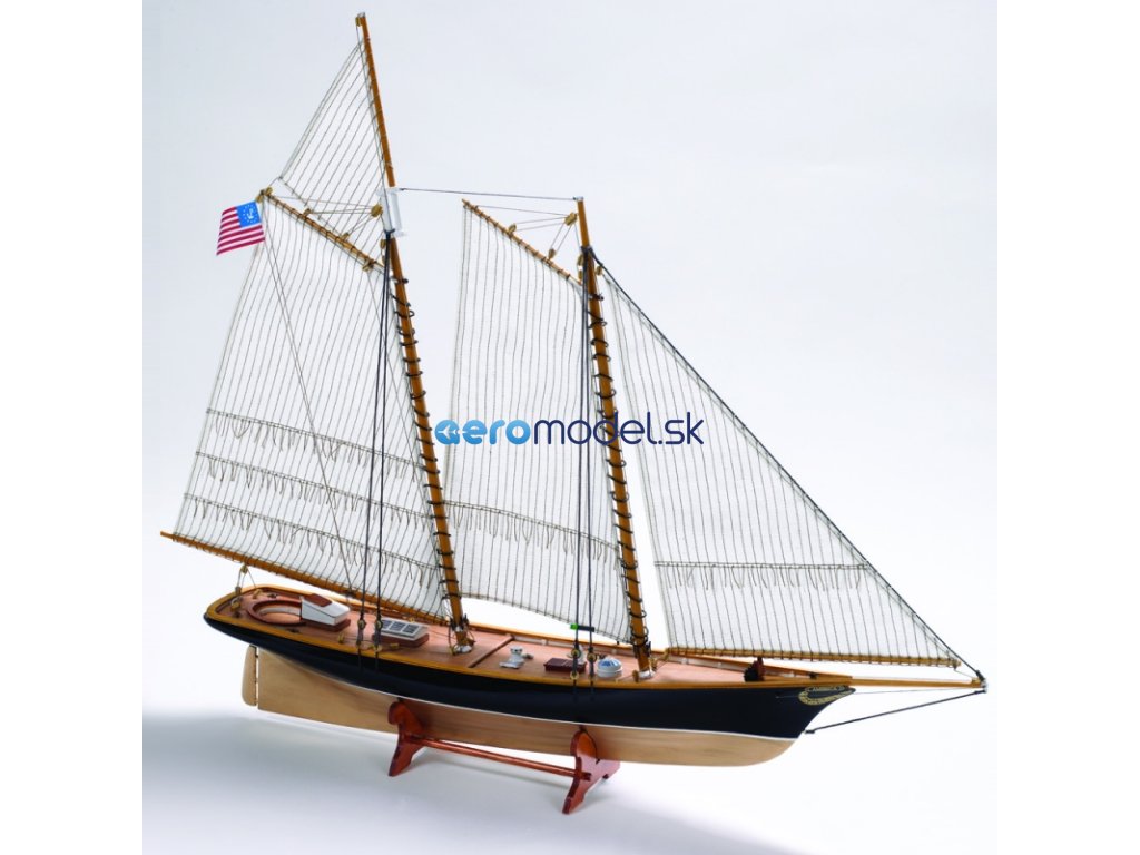 V roce 1850 na výzvu Newyorského plachetního klubu proslulý lodní stavitel George Steers narýsoval plány nové velmi rychlé lodi. 22. srpna 1851 se dvoustěžňový škuner America na pozvání britské Královské eskadry jachet zúčastnil závodu Hundred Guinea Cup okolo ostrova Isle of Wight u jižního pobřeží Anglie. V konkurenci 14 britských plavidel snadno zvítězil; o tři dny později palubu lodi poctila svojí návštěvou sama královna Viktoria. America se vrátila s velkou slávou domů a vyhranou trofej (mořskými vlky láskyplně přezdívanou „Auld Mug“ – „Starej hrnek“) věnovala Newyorskému plachetnímu klubu. Pohár od té doby nese jméno America’s Cup a soutěží se o něj dodnes, což z něj dělá nejstarší sportovní trofej světa. America se poté zúčastnila dalších 50 závodů, sloužila jako cvičná loď námořní akademie v Newportu, ve 20. století potom chátrala v různých přístavech. Ačkoliv se president Roosevelt pokoušel v roce 1940 přesvědčit Kongres ke schválení prostředků na záchranu lodi a její umístění do Národního námořního muzea, doba měla jiné priority. Při sněhové bouři v roce 1942 America vzala za své – ze zachráněných kusů dřeva byl postaven model lodi, který najdete v muzeu Námořní akademie v Annapolisu. V posledních 50 letech byly postaveny tři repliky škuneru - dvě v USA - ale třetí (pokřtěná Skythia) má domovský přístav v německém Rostocku a slouží jako komerční výletní plavidlo. America je určena pro mírně pokročilé lodní stavitele; je konstruována jako neplovoucí stolní maketa.