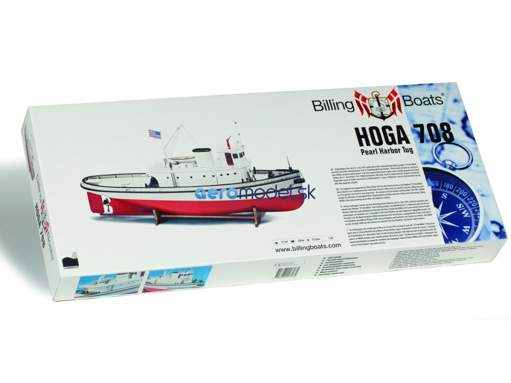 Hoga má trup klasické dřevěné konstrukce z laserem vyřezávaných dílů s plaňkovanou obšívkou, dřevěnou palubu a nástavbu. Stavebnice obsahuje všechny dřevěné a plastové díly potřebné pro dokončení modelu, maketové příslušenství (např. poziční světla, kotvu, lodní šroub atd.).