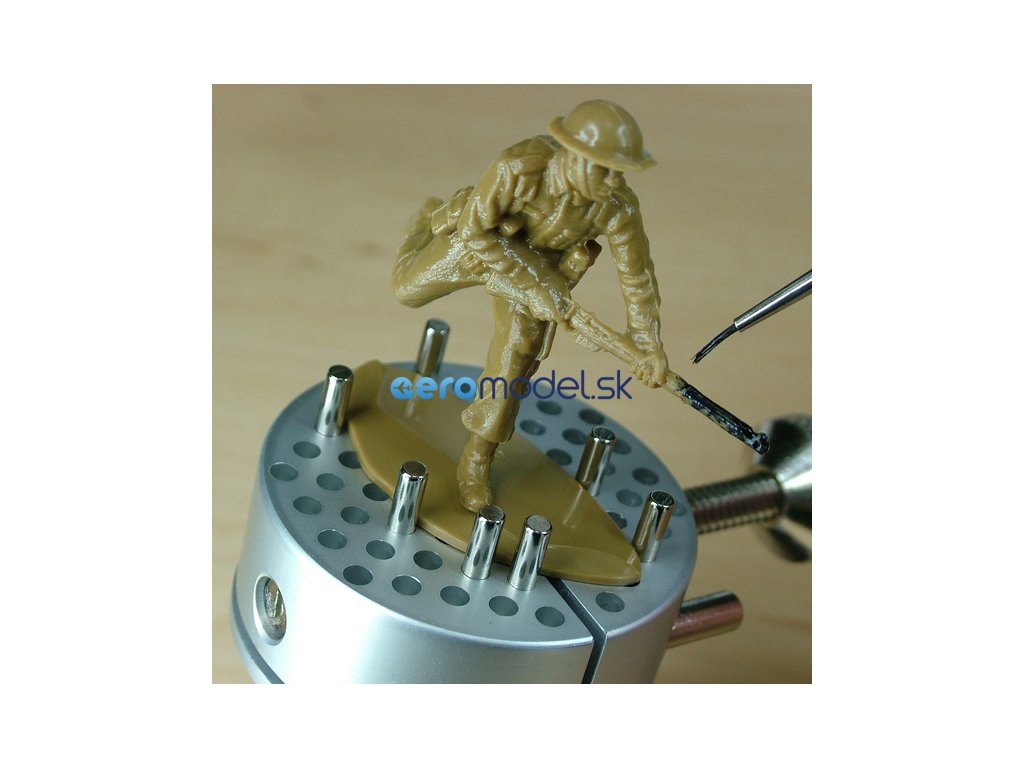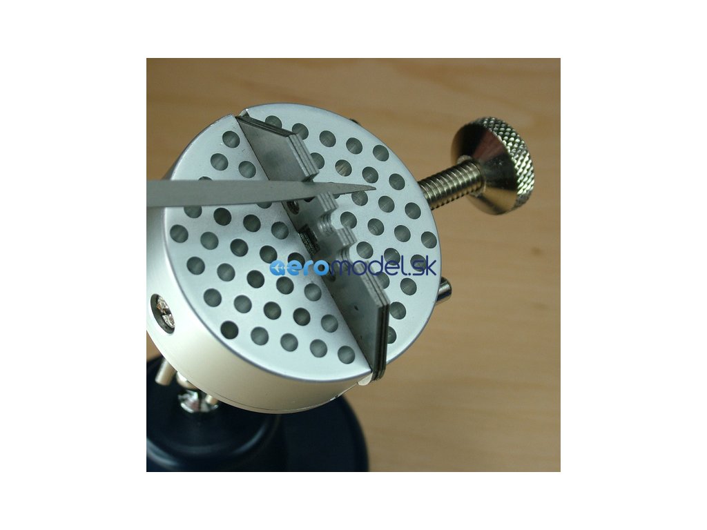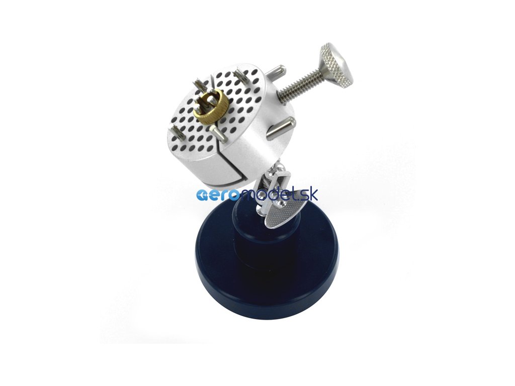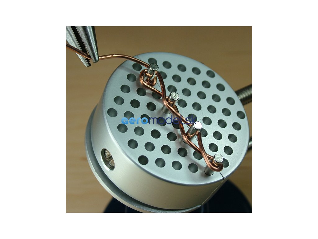 Modelcraft univerzální držák o délce 140 mm je určen pro držení menších součástí při malování, řezání, rytí nebo lepení. Upínací hlava o průměru 50 mm může být odstraněna ze základny a v případě potřeby namontována na větší stolní svěrák. Kolíky lze použít pro ohýbání a tvarování drátu. Sada obsahuje 8 ocelových kolíků, které mohou být umístěny kdekoli na hlavě. Základna 504g je vybavena zabudovaným gumovým kroužkem, díky kterému je pracovní držák stabilní a neklouzavý.