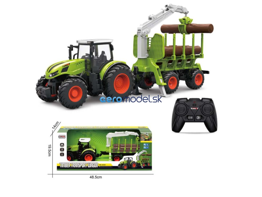 Korody: RC Traktor 2,4 Ghz s vozíkom na drevo, svetlá, zvuk 1:24