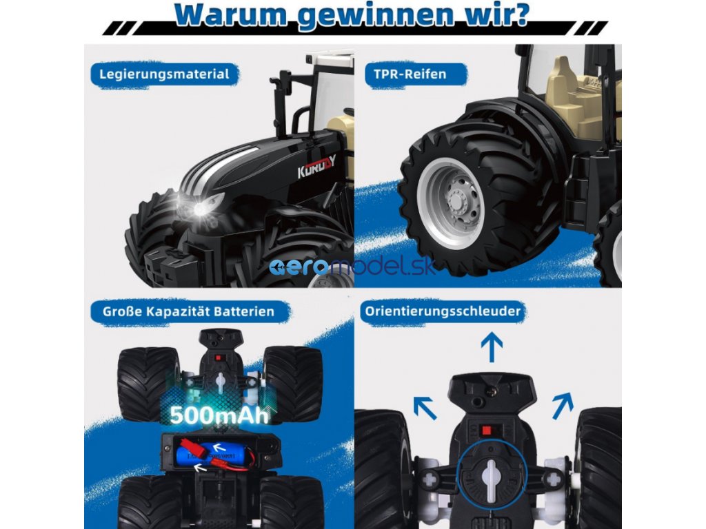 Ovládanie traktora je veľmi jednoduché, pomocou pákového ovládača na frekvencii 2,4 GHz.