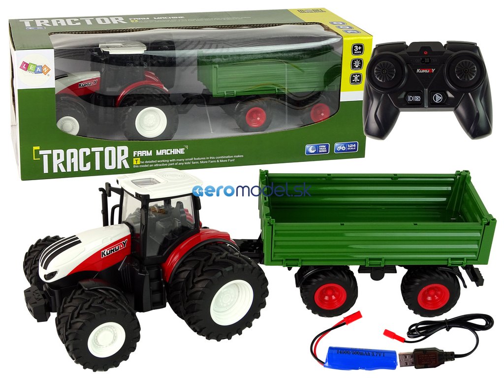 Celá hračka je vyrobená z odolného plastu, čo zaručuje jej odolnosť pre dlhodobú zábavu. Rozmery traktora sú: 19 cm x 12 cm x 15 cm a s prívesom: 41 cm x 19 cm x 15 cm. Diaľkové ovládanie s rozmermi 12 cm x 4 cm x 8 cm perfektne padne do rúk najmenších.