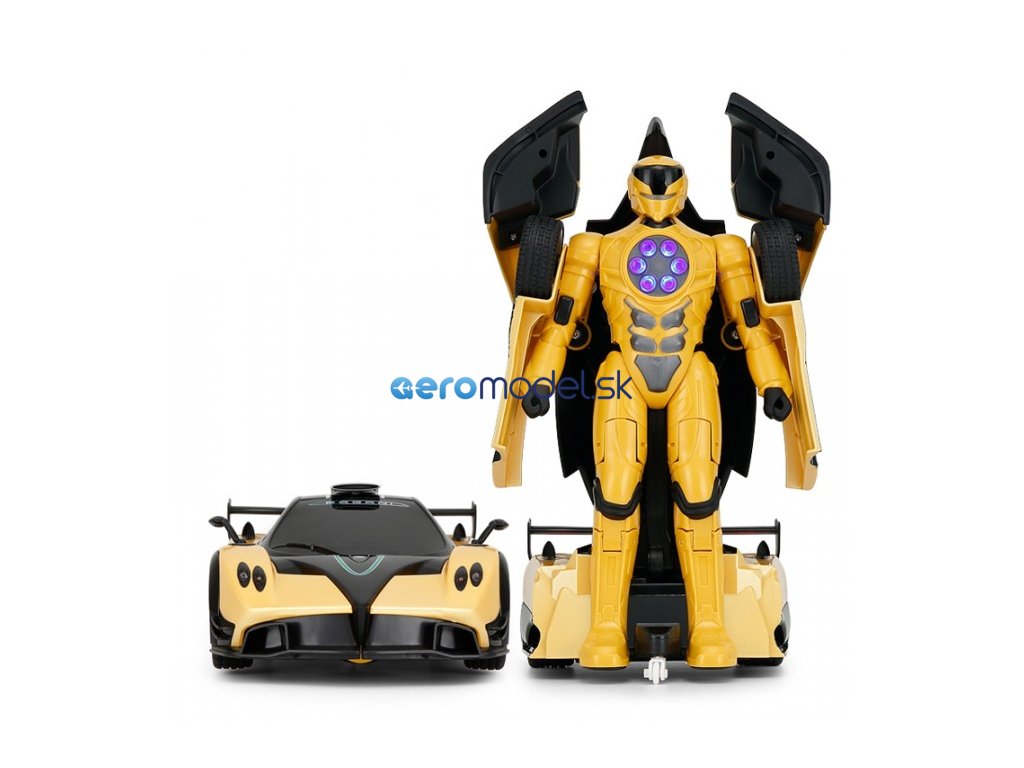 Absolútna novinka - super auto s diaľkovým ovládaním, ktoré vás dokáže prekvapiť! Skvelý darček pre deti i dospelých. Jedným tlačidlom sa Transformer môže okamžite zmeniť na diaľkovo ovládaný automobil. Model je vybavený nezávislým zavesením a realistickými gumovými pneumatikami. Rovnako ako v skutočnom robote, pri jazde dopredu zapína veľkolepé svetlá. Nepoužitá môže byť skvelá dekorácia na poličke. Je napájaný vyhradenou batériou, ktorú môžete načítať priamo z portu USB počítača.
