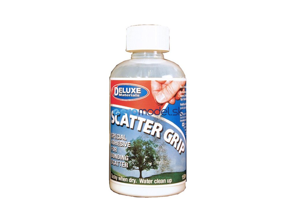 Scatter Grip je lepidlo na lepenie najmä umelej trávy alebo podobných materiálov na pevný podklad, napr. v modelárstve, ale aj pri vytváraní reálnych architektonických vizualizácií. Podklad musí byť nenasiakavý (v opačnom prípade je potrebné podklad najprv natrieť farbou). Pomocou štetca naneste tenkú vrstvu výrobku a po približne 20 minútach bude natretý povrch optimálne lepkavý. Potom pritlačte natiahnuté kusy umelej trávy k povrchu a suchým štetcom vyrovnajte povrch. Nezaschnutý výrobok môžete zmyť vodou.