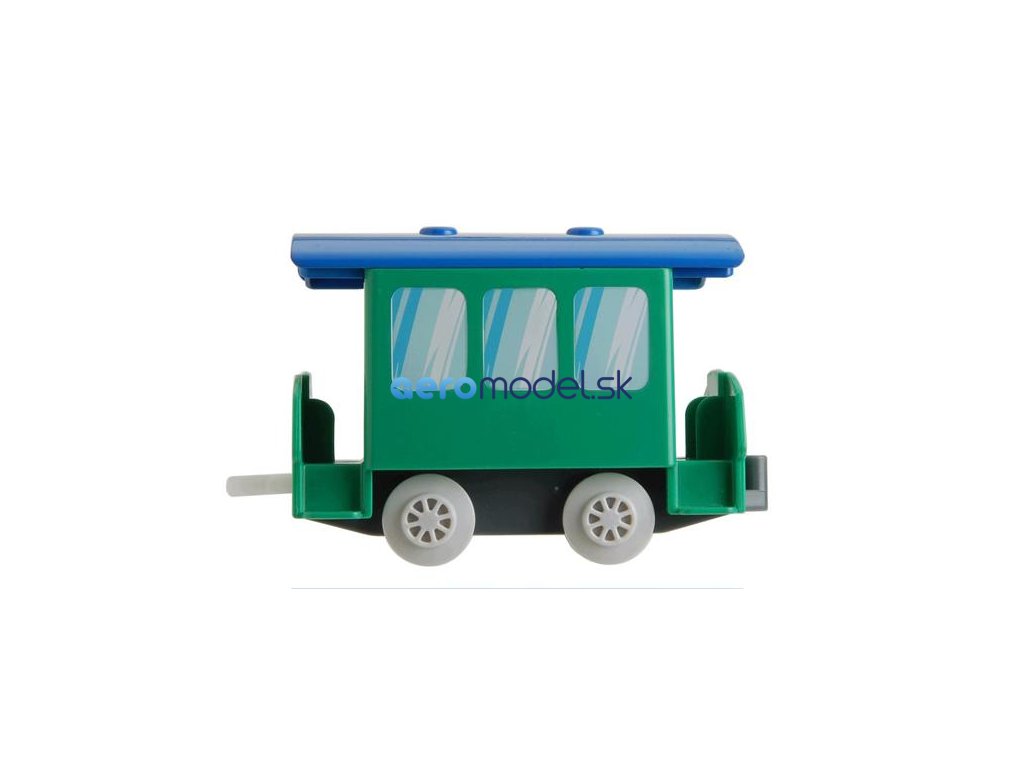 - Vláčik s osobným a nákladným vagónom, budova stanice z molitanu - všetko uložené v praktickom sieťovom vreckári.