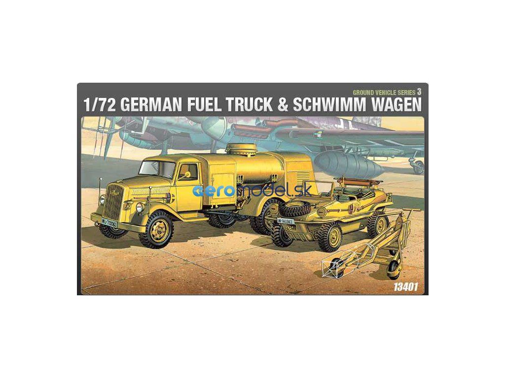 Akademický plastový model vojenského nemeckého tanku Fuealtank a Shiwimm v mierke 1:72.