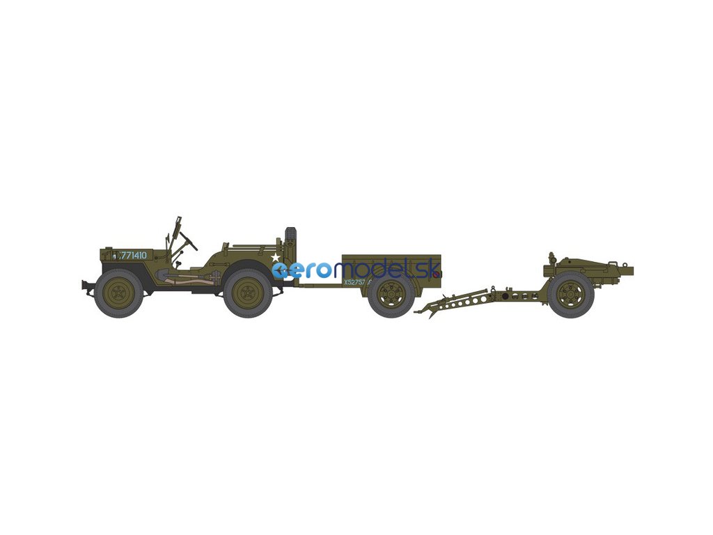 | Dĺžka: | Džíp: dĺžka 47 mm; príves: dĺžka 35 mm; húfnica: dĺžka 57 mm |