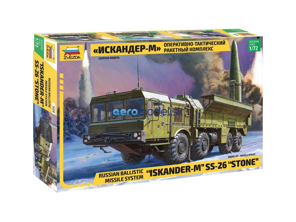 Plastikový model Zvezda 5028 - ruský raketový systém Iskander-M SS-26 Stone v mierke 1:72. Sada obsahuje 247 dielikov, dĺžka 183 mm, obtiažnosť 3.