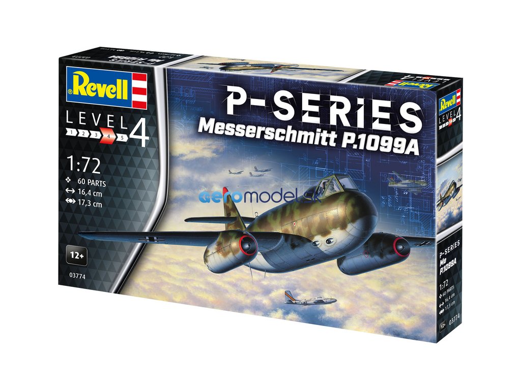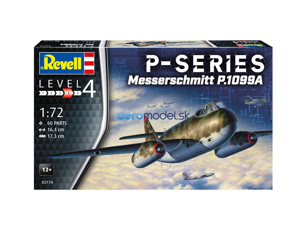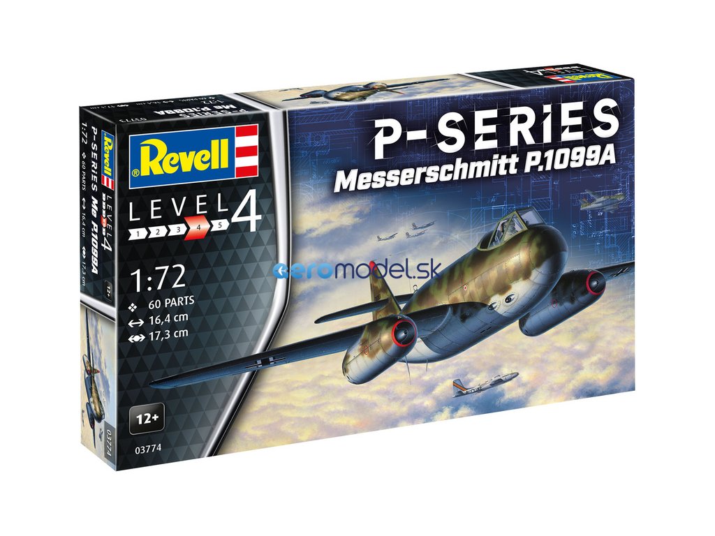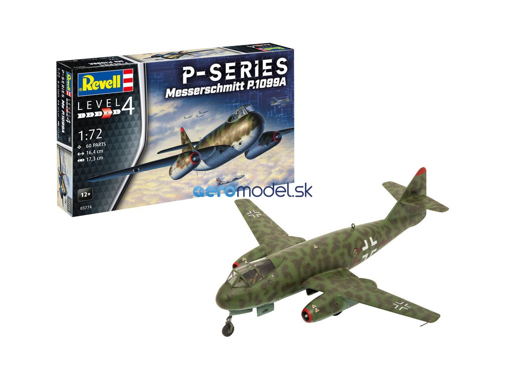 Revell plastikový model letadla Messerschmitt P.1099A - P-Series v měřítku 1:72 ke slepení. Stavebnice obsahuje 60 dílků, obtížnost 4.