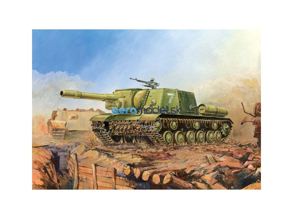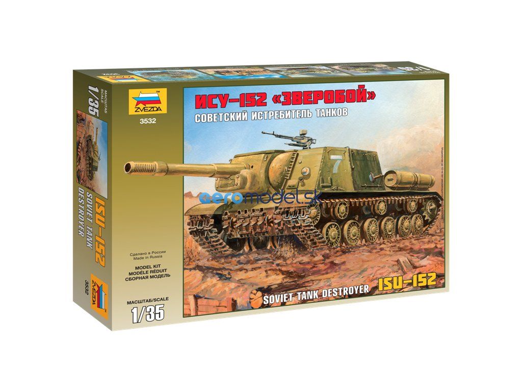Plastikový model Zvezda 3532 - sovietske samohybné delo ISU-152 v mierke 1:35 na zlepenie. Sada obsahuje 200 dielikov, dĺžka 250 mm, obtiažnosť 3.