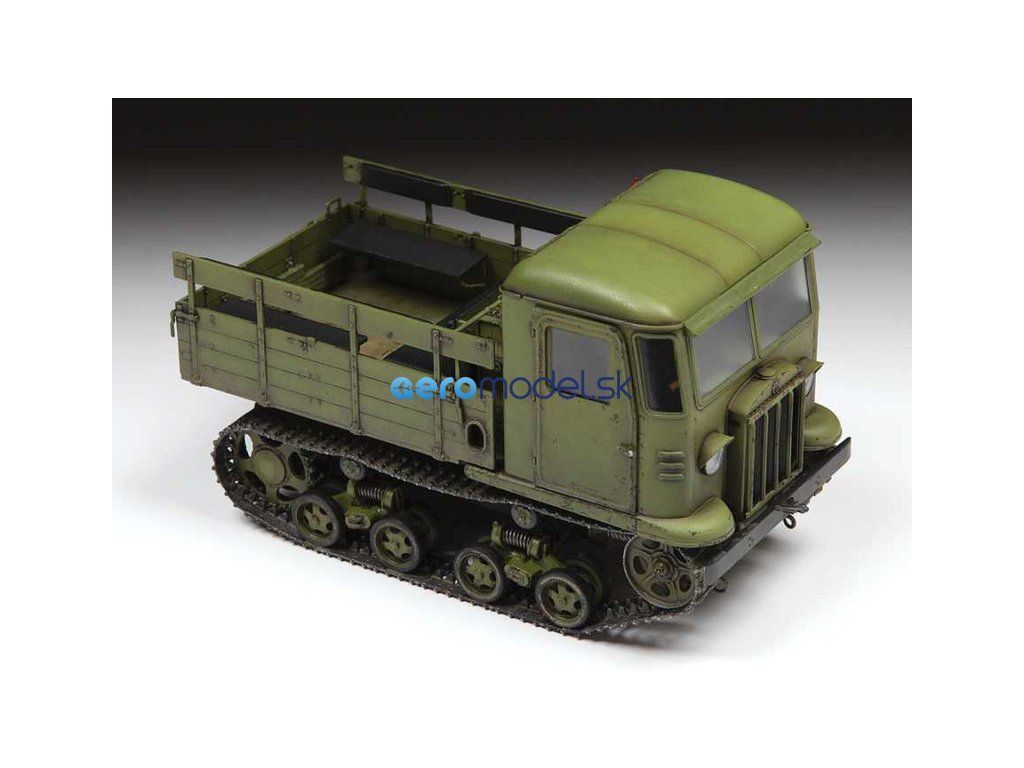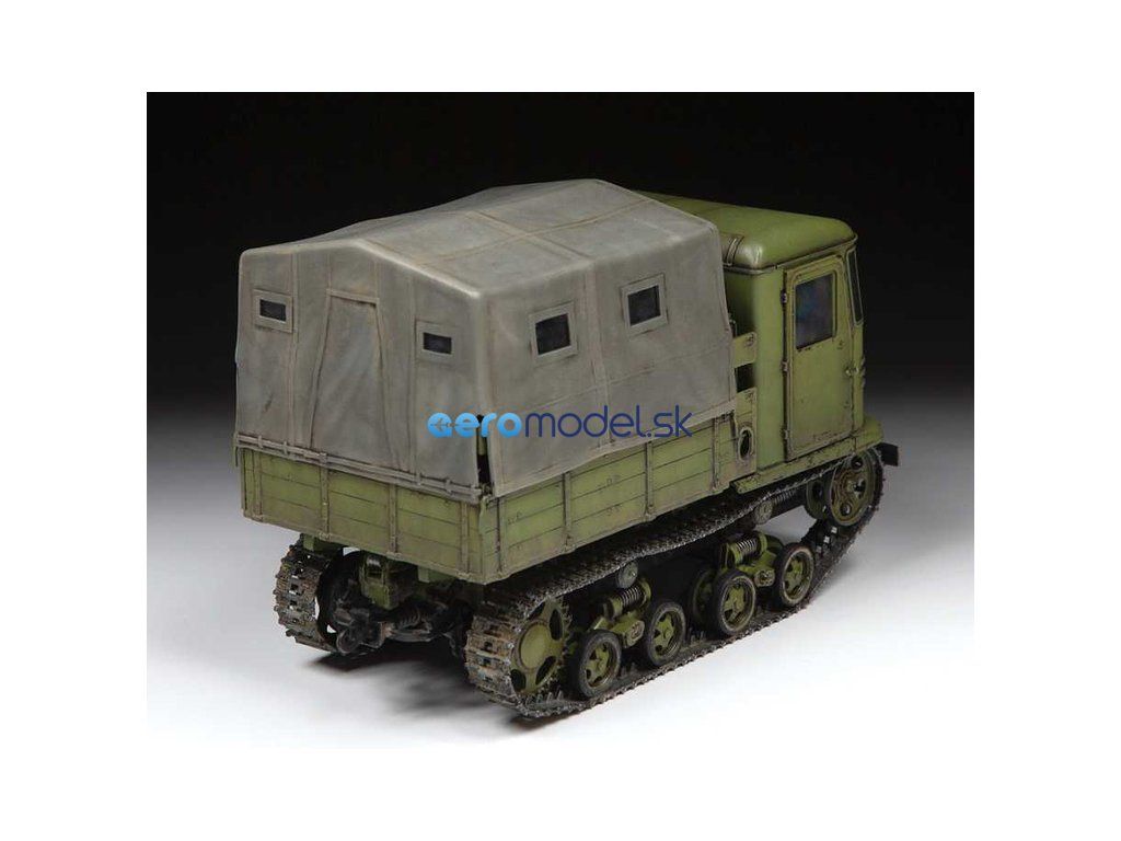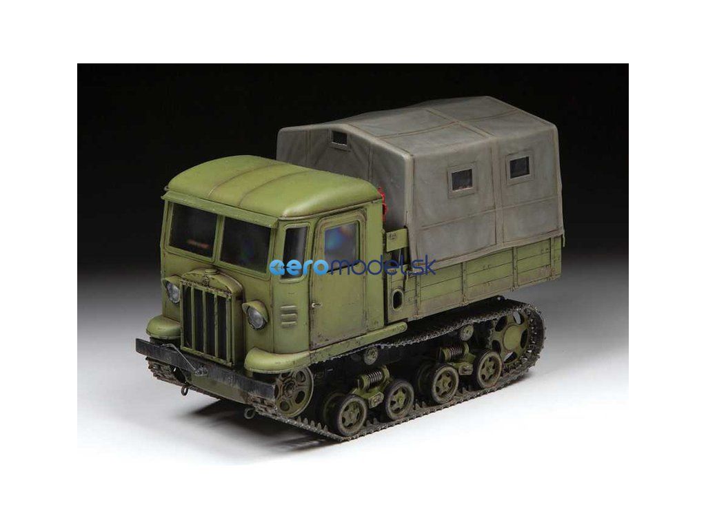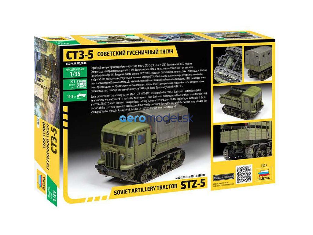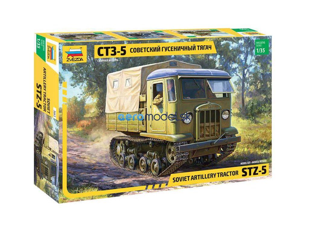 Plastikový model Zvezda 3663 - sovietske pásové vozidlo Stalinec STZ-5 v mierke 1:35 na zlepenie. Stavebnica obsahuje 273 dielikov, dĺžka 118 mm, obtiažnosť 3.
