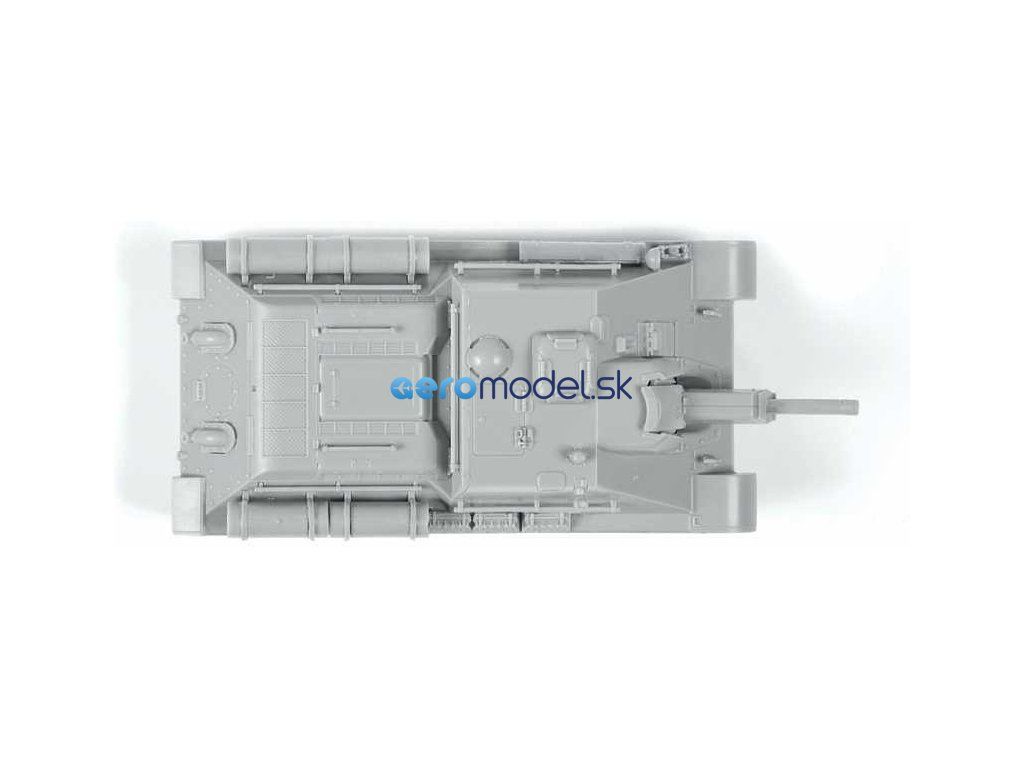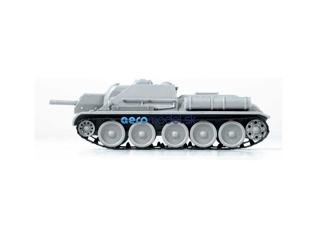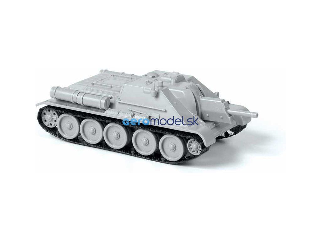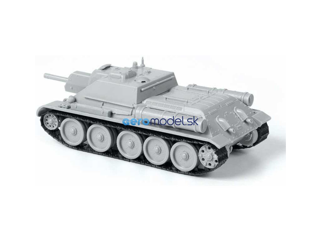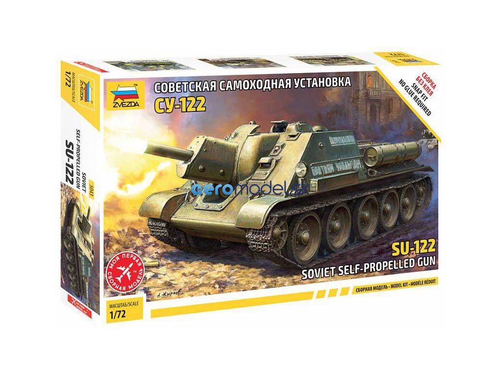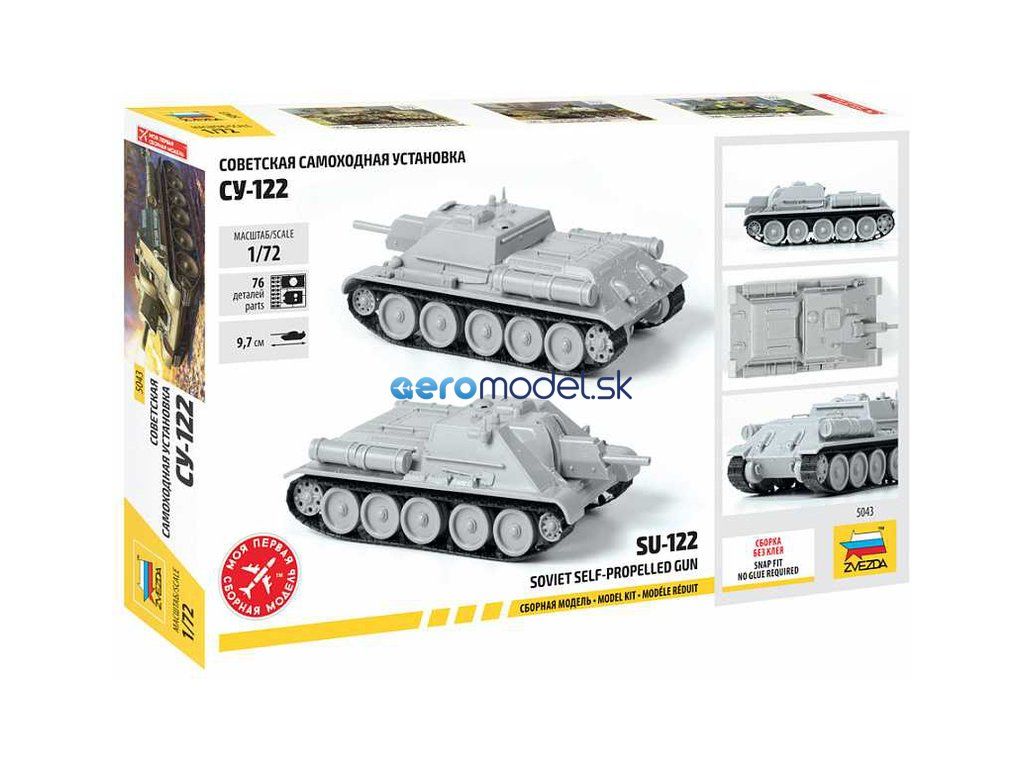 Plastikový model Zvezda 5043 - sovietske samohybné delo SU-122 v mierke 1:72. Súprava obsahuje 76 dielov, dĺžka 97 mm.