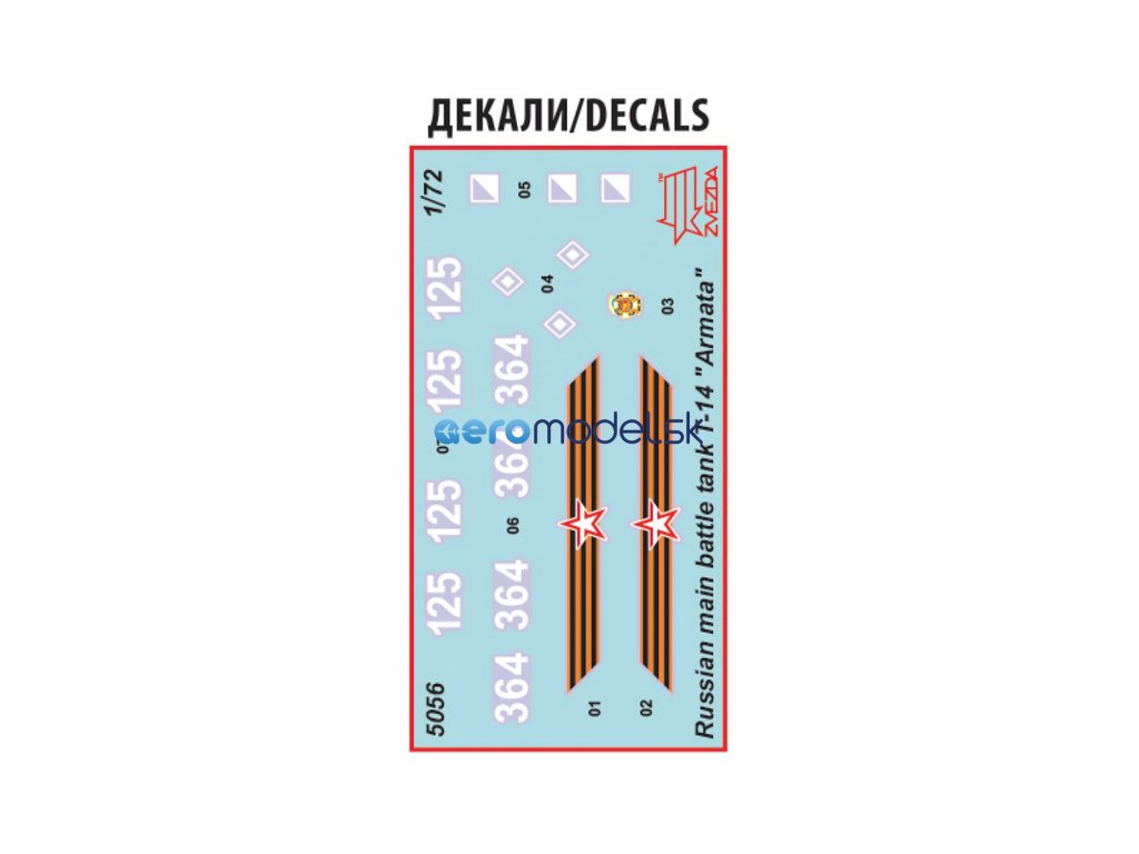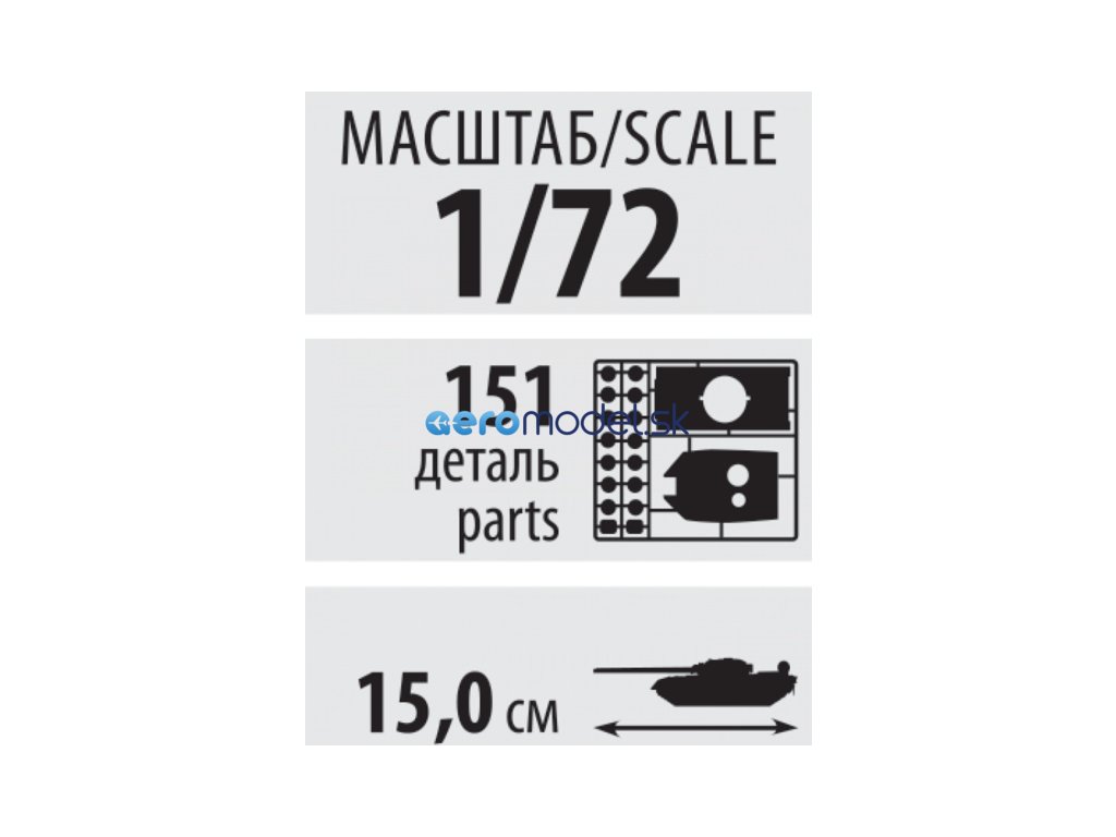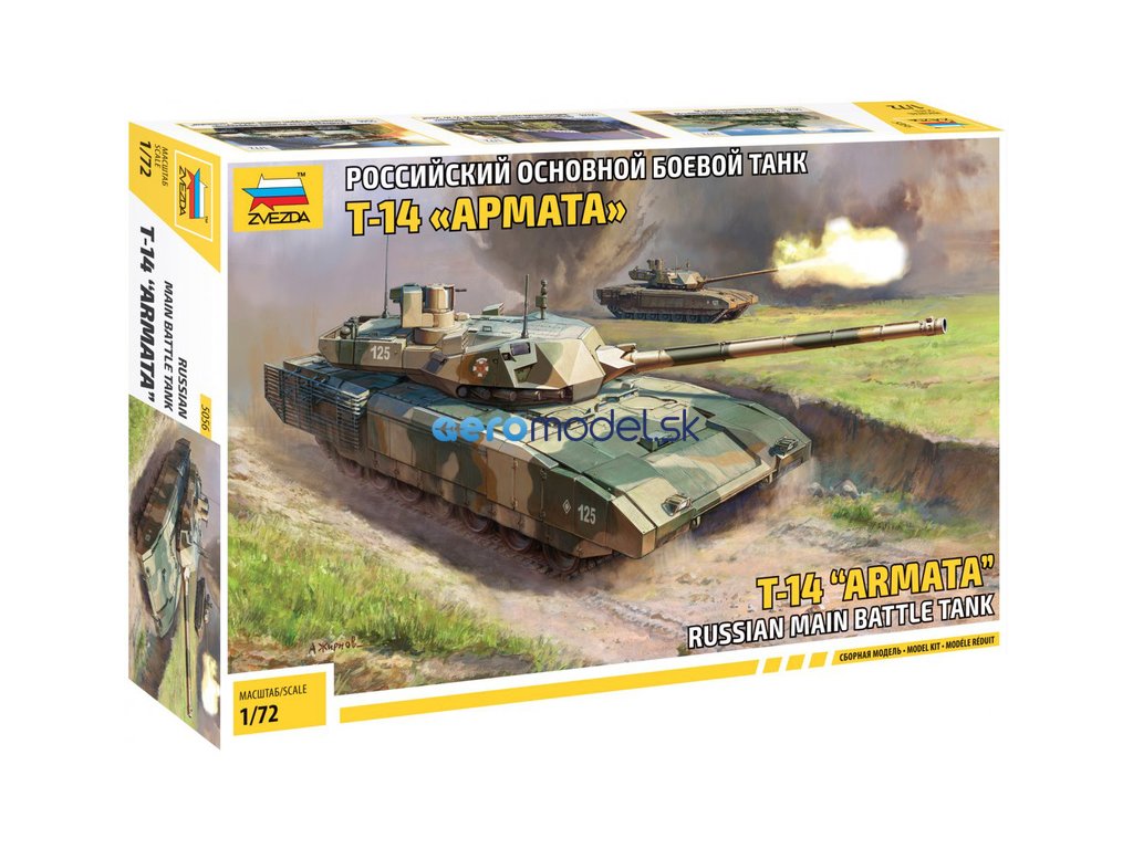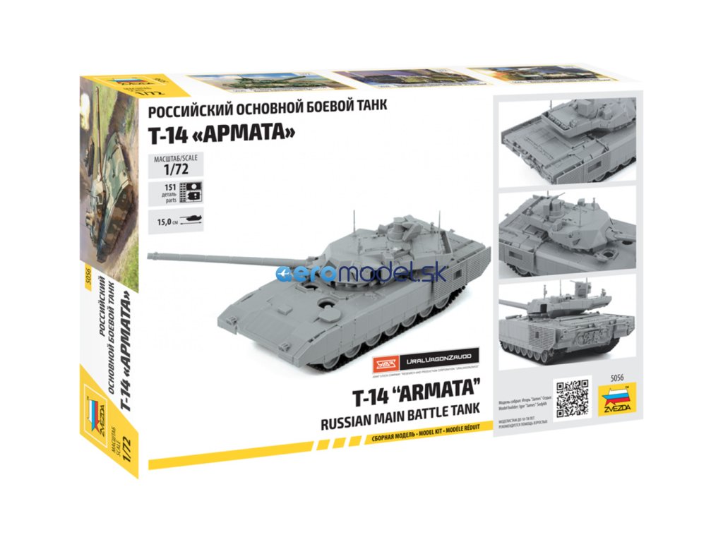 Plastikový model Zvezda 5056 - ruský hlavný bojový tank T-14 "Armata" v mierke 1:72 na zlepenie. Stavebnica obsahuje 151 dielikov, dĺžka 150 mm, obtiažnosť 5.