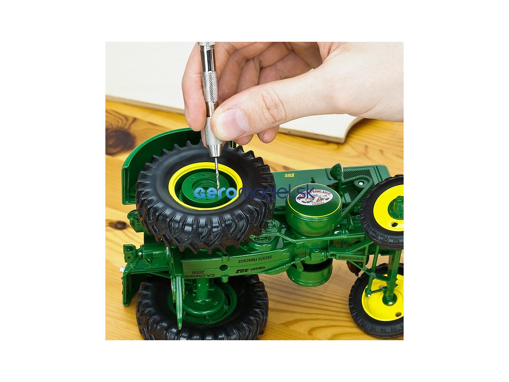 Modelcraft mini ruční vrtačka s otočnou hlavicí pro přesné vrtání. Upínací kleštiny 0-1,2 mm, & 1,3-2,4 mm a 0,8-2,0 mm, & 1,8-2,9 mm. Otočná dřevěná rukojeť pro pohodlou práci. Délka 110mm, hlavice průměr 20mm.