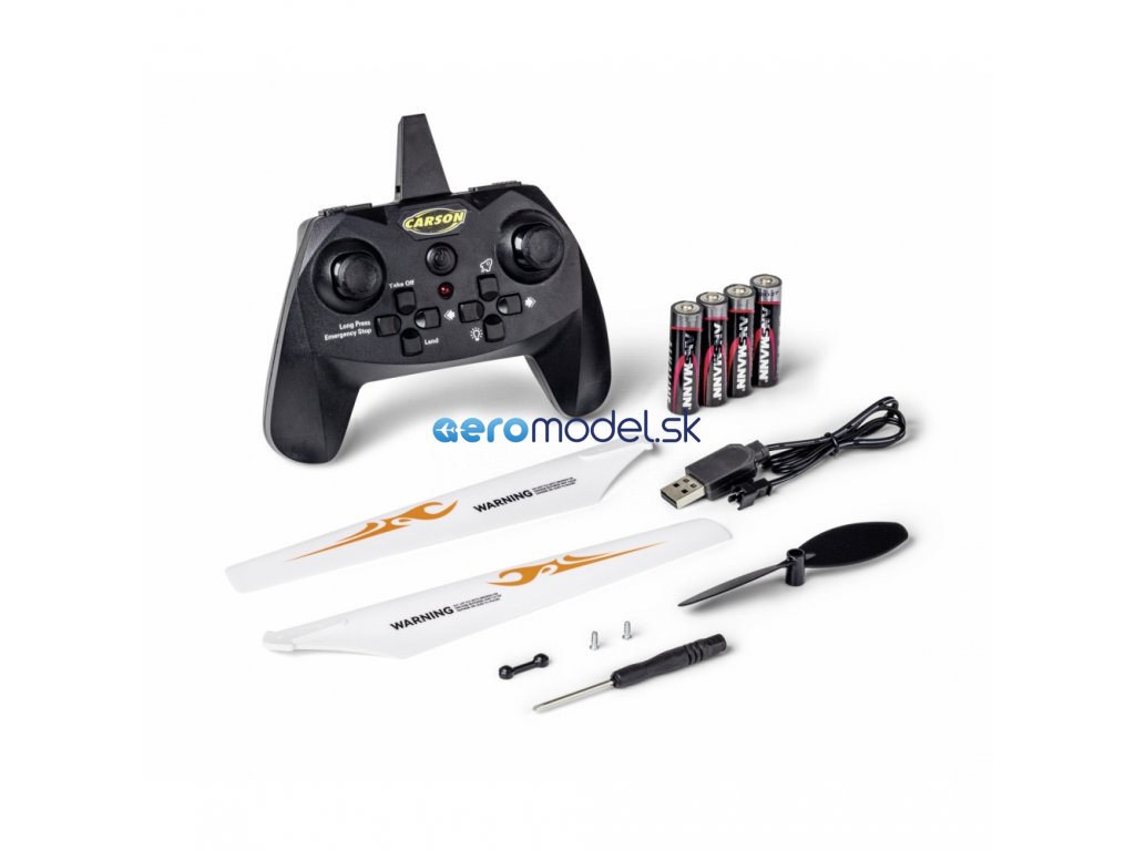 Easy Tyrann 670 spoločnosti CARSON je akčný a zábavný stroj pre všetkých fanúšikov helikoptér, dokonca aj začiatočníkov! Jednoduchá manipulácia - vďaka funkcii elektronického vzletu a pristátia, je vrtuľník jednoduchý a má bezpečné ovládanie. Rýchlosť je možné nastaviť pomocou 2 rôznych nastavení rýchlosti, vďaka čomu je Easy Tyrann obratnejší a rýchlejší. Svetlá vrtuľníka je možné navyše zapínať a vypínať pomocou tlačidla vysielača. Podvozok a chvostový výložník sú vyrobené z ľahkého a robustného materiálu hliník. Easy Tyrann 670 je dodávaný kompletný a pripravený na okamžitý let.